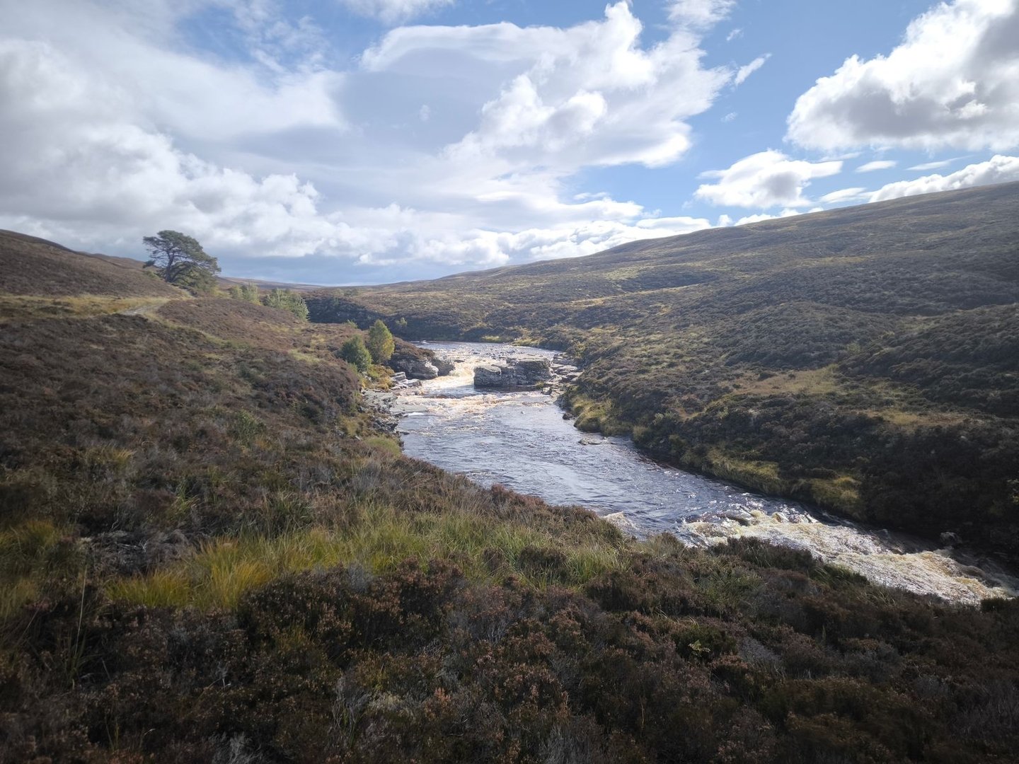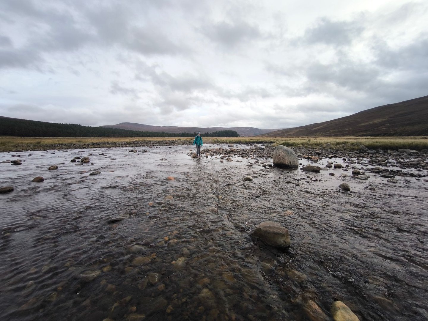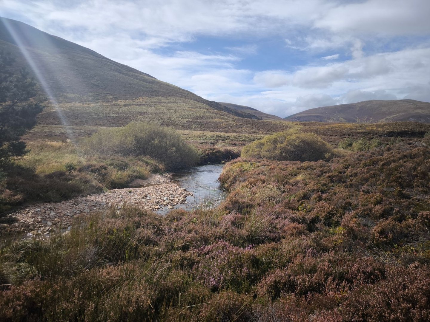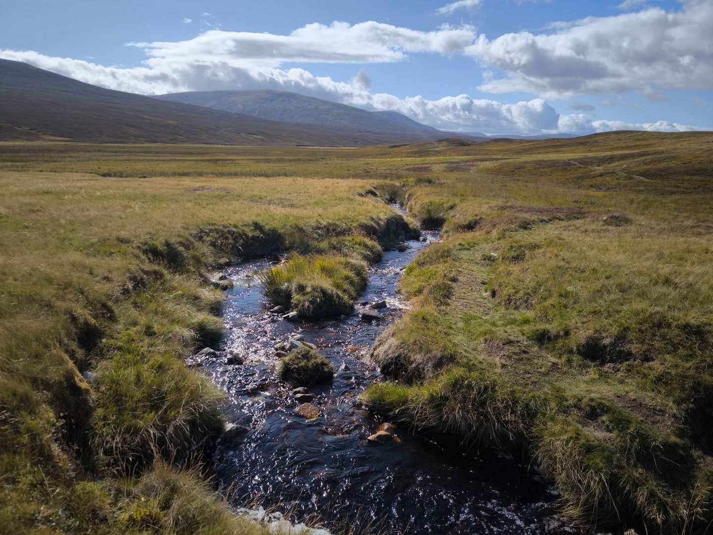Anschließend ging es dann weiter über die Hügel, durch einen Sumpf (natürlich!) und entlang von Bächen bis zum River Tromie.