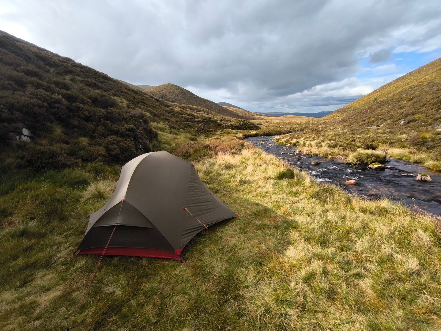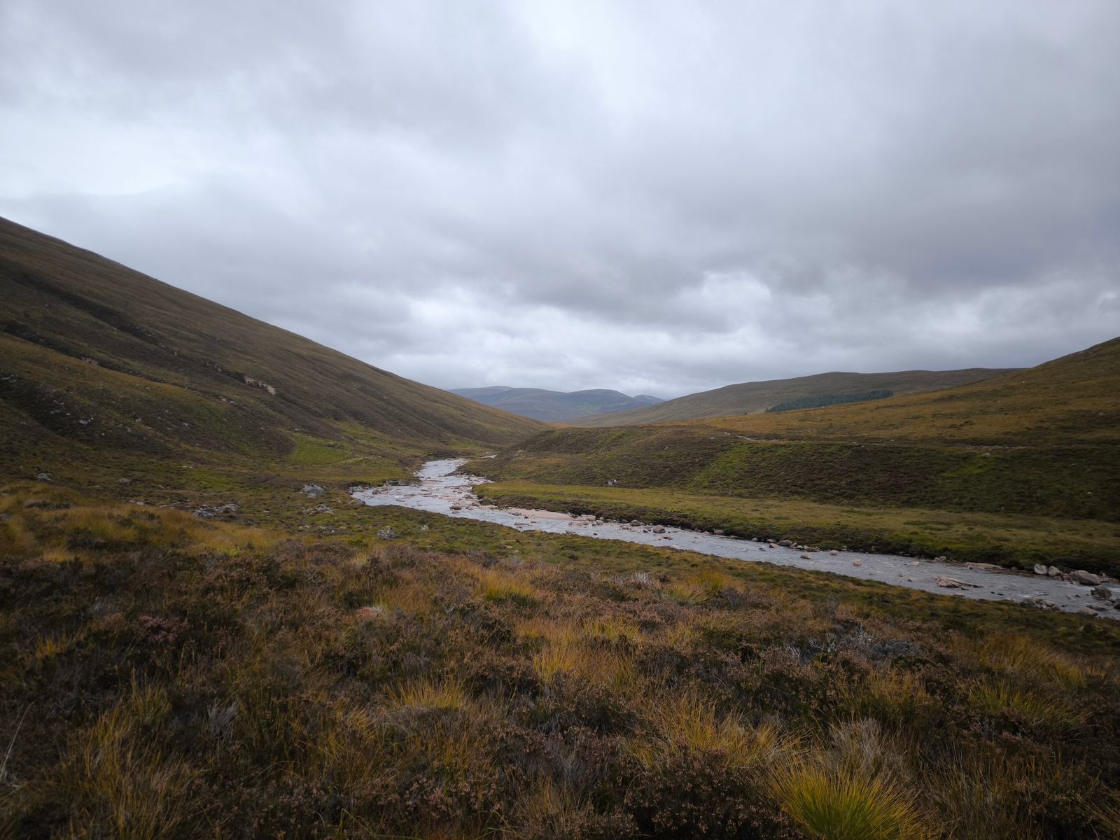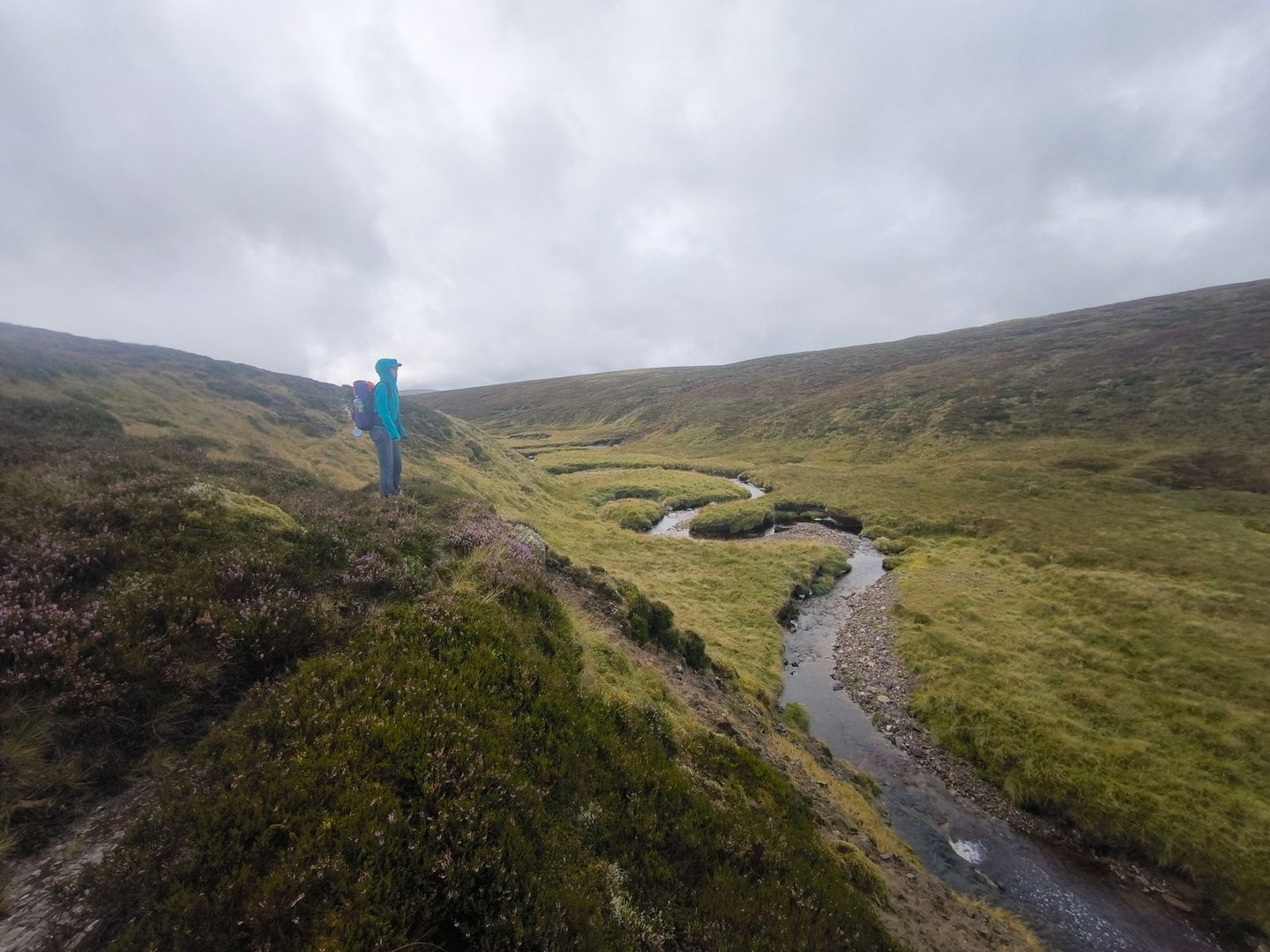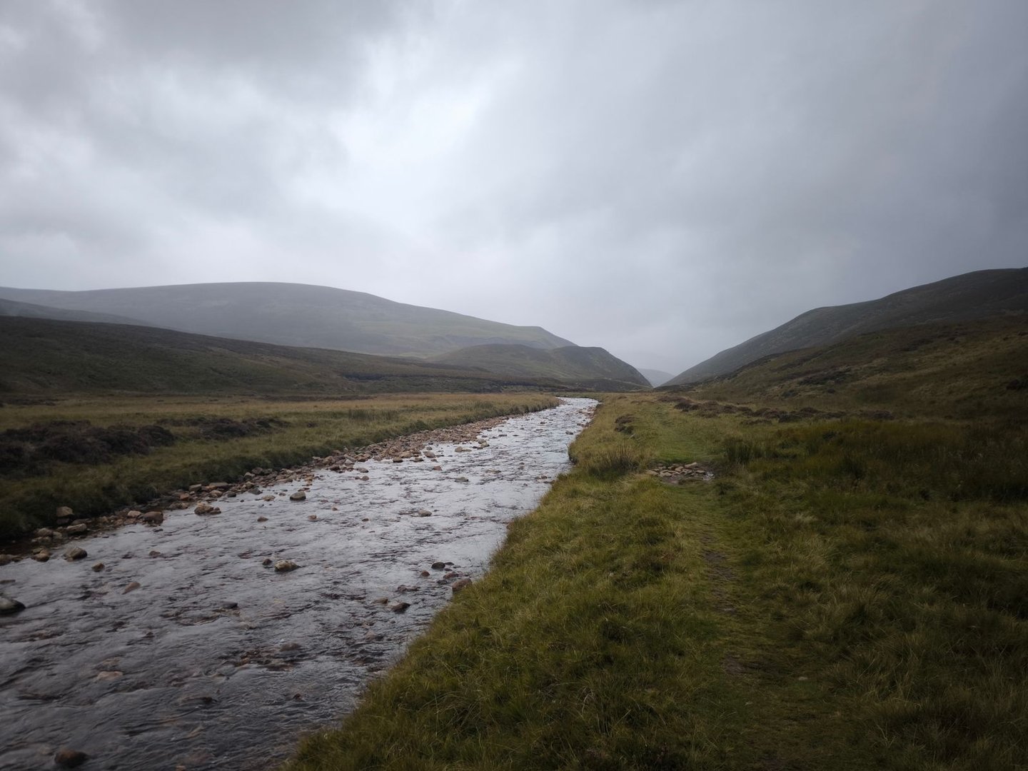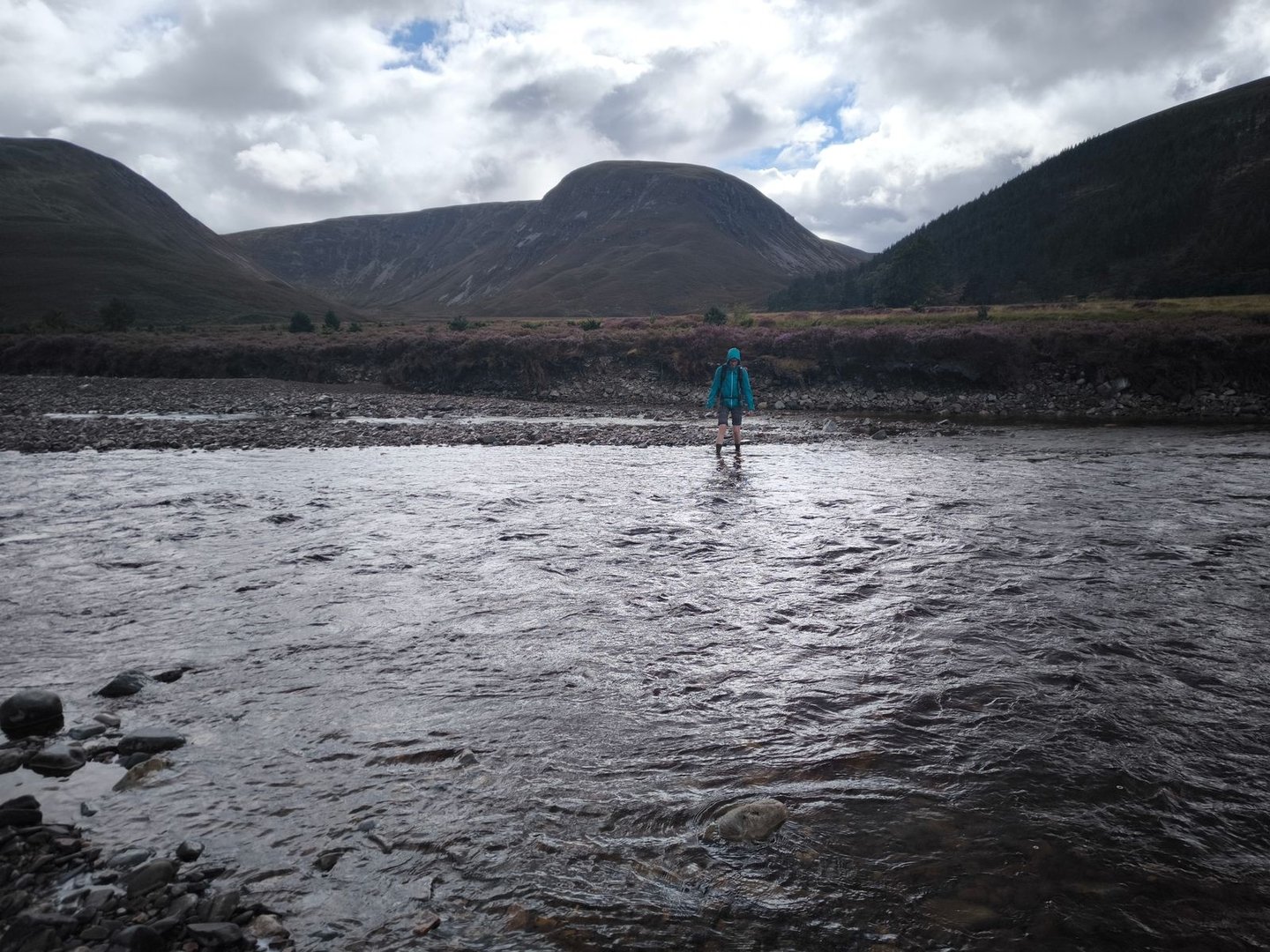Anschließend ging es dann weiter über die Hügel, durch einen Sumpf (natürlich!) und entlang von Bächen bis zum River Tromie.