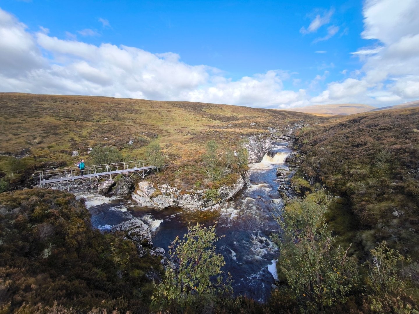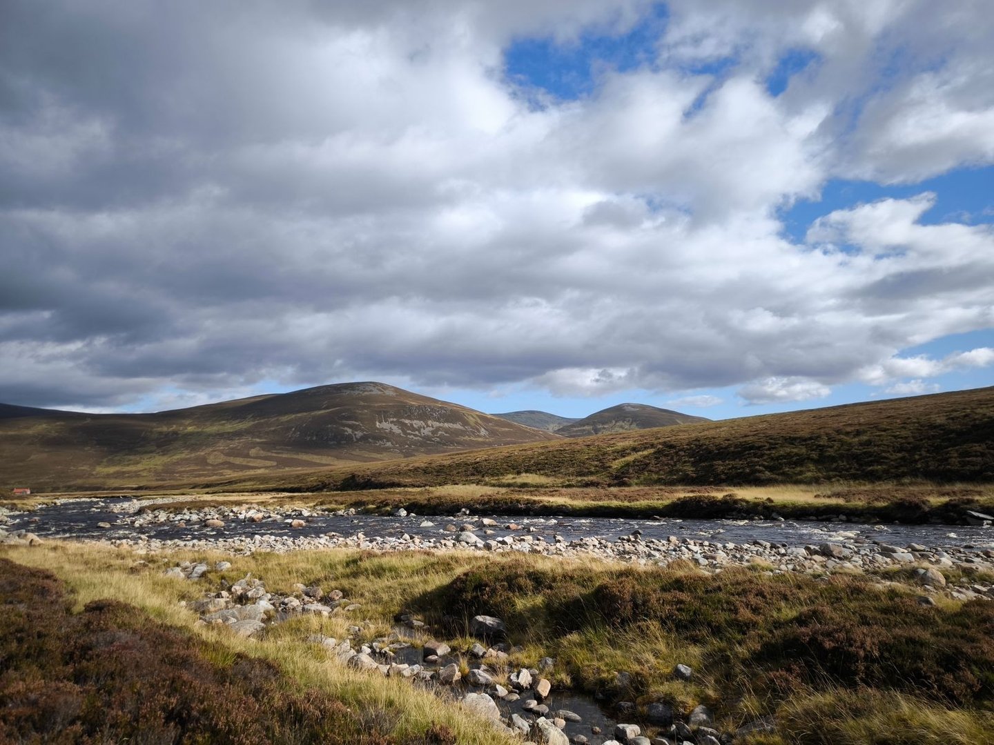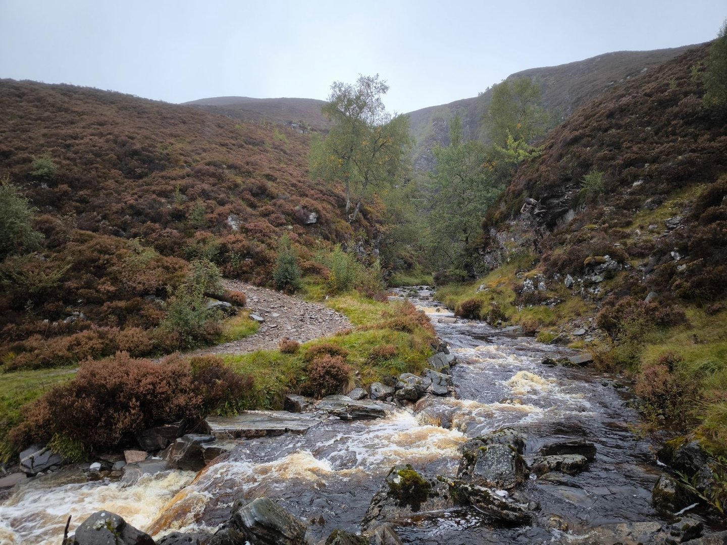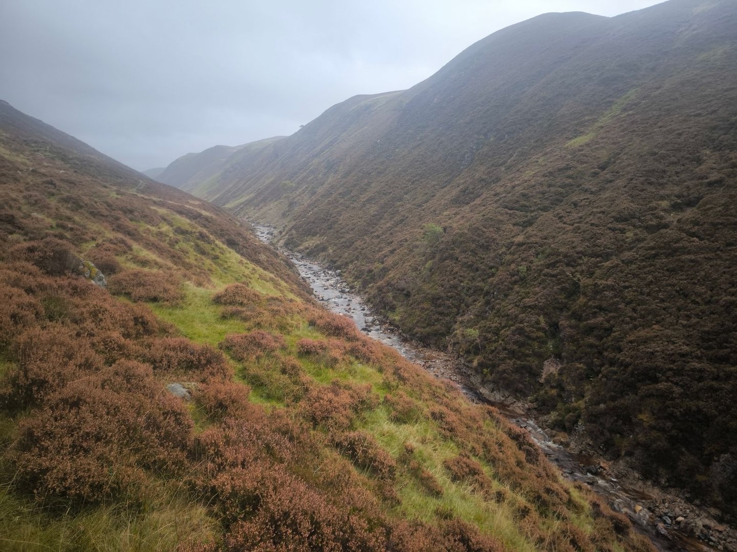 Anschließend ging es dann weiter über die Hügel, durch einen Sumpf (natürlich!) und entlang von Bächen bis zum River Tromie.