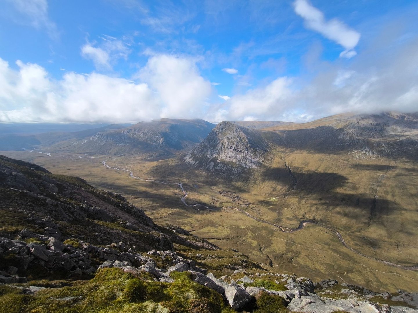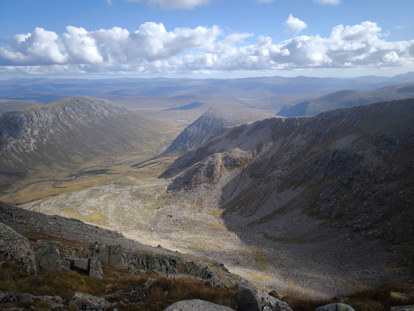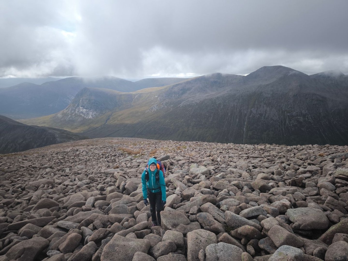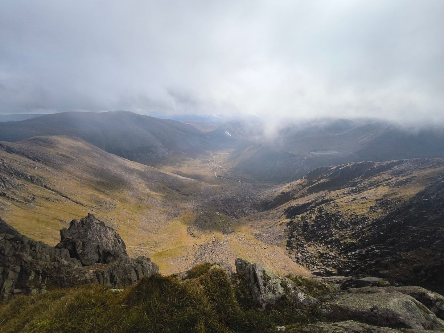 Nachdem es zunächst nicht so aussah, hatten wir auch am Morgen wieder relativ gute Sicht. Wir überquerten den Sgor Gaoith,
