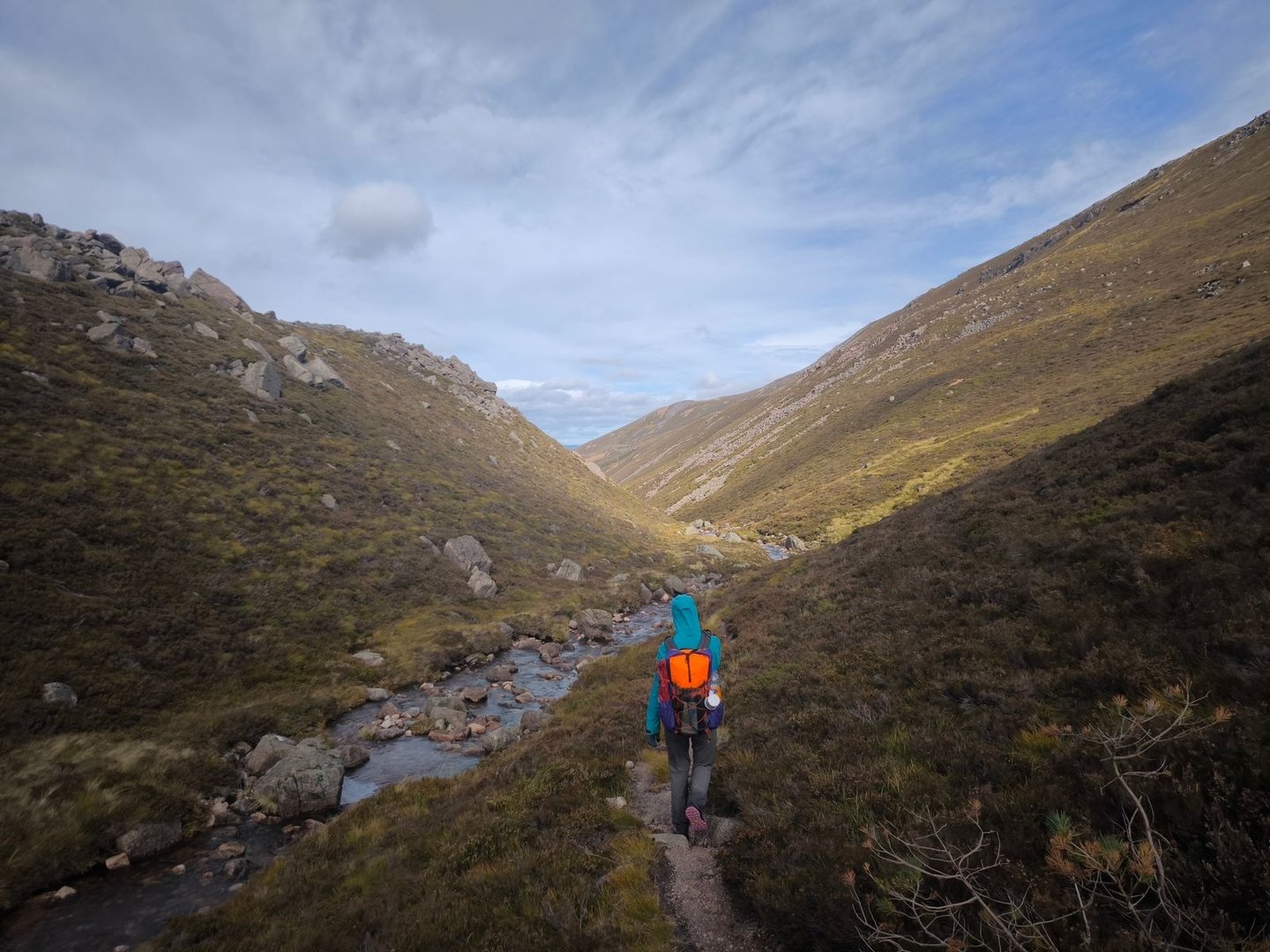 Morgens waren wir erstmal so verzaubert von Glen Fechie, dass wir statt wieder zurück über den Fechie River zu queren erstmal insgesamt 7km Umweg durch das Tal gegangen sind (dafür gab es dann aber auch eine Brücke).