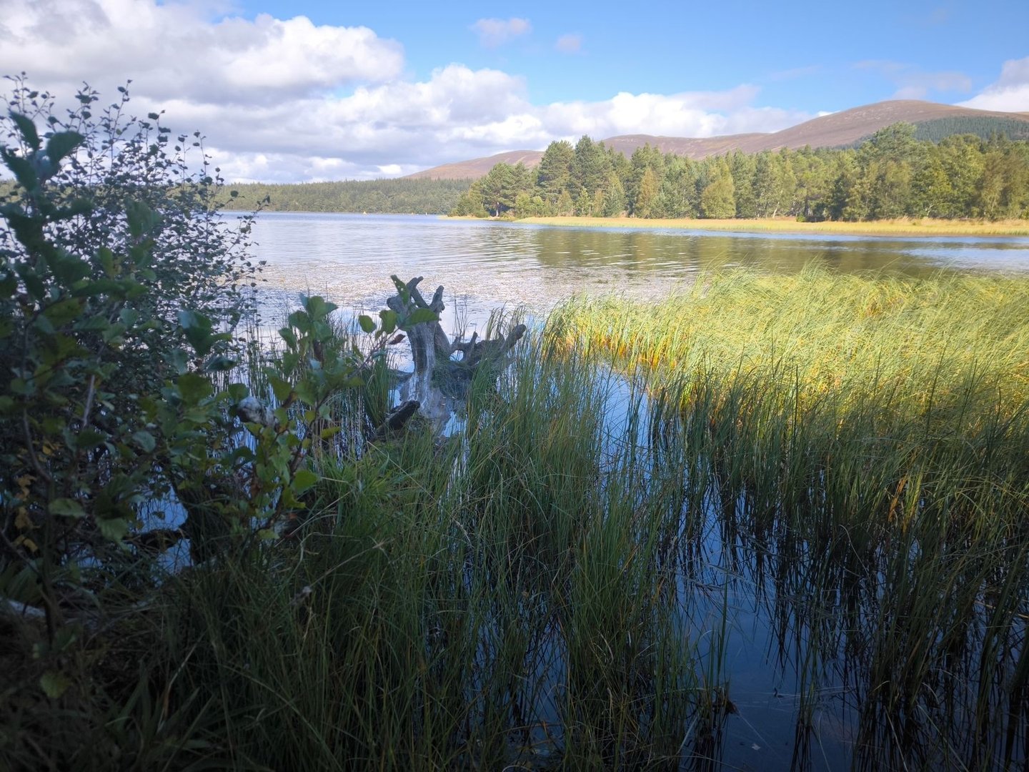 Danach durch älteren Wald und durch kleine Ansiedlungen weiter bis zu den Seen bzw. Weihern der Uath Lochans am unteren Ende des Glen Feshie. Hier ist zwar etwas mehr los (es gibt einen Wanderparkplatz direkt bei den Seen) aber die Natur ist wirklich wunderschön.