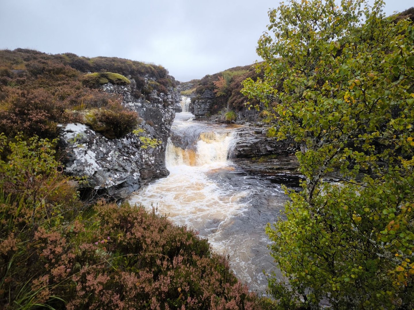 Am Morgen gab es dann das erste Kennenlernen mit den Midgies (ja das Kopfnetz hat sich gelohnt, auch wenn es bei nur 3-4 morgendlichen Überfällen blieb). Nachdem wir am Vortag noch auf einer leicht überwachsenen Gravel-Straße unterwegs waren, sollten wir am zweiten Tag die wahren schottischen “Wege” (sprich: Bachlauf/Sumpfloch/Matsch) kennenlernen.