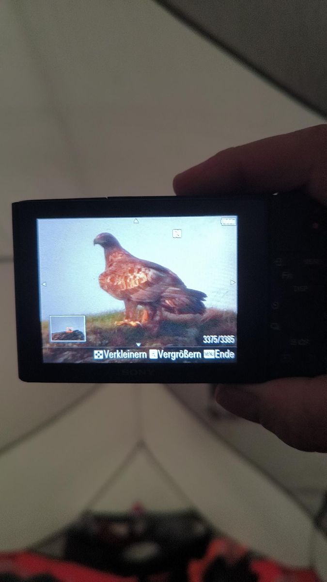 Nicht nur, dass wir schon seit wir in Schottland sind unverschämtes Glück mit dem Wetter haben... Summit Camp bei bestem Wetter, noch einen kurzen Abendspaziergang auf den nächsten Gipfel und dann das! Nicht nur einen Steinadler gesehen, sondern sitzend(!) und quasi close up fotografiert mit meiner alten Minikamera. Als ob er extra für mich da gelandet wäre. Schon jetzt ein absolutes Highlight des Trips. Weiterhin völlig begeisterte Grüße aus Schottland.