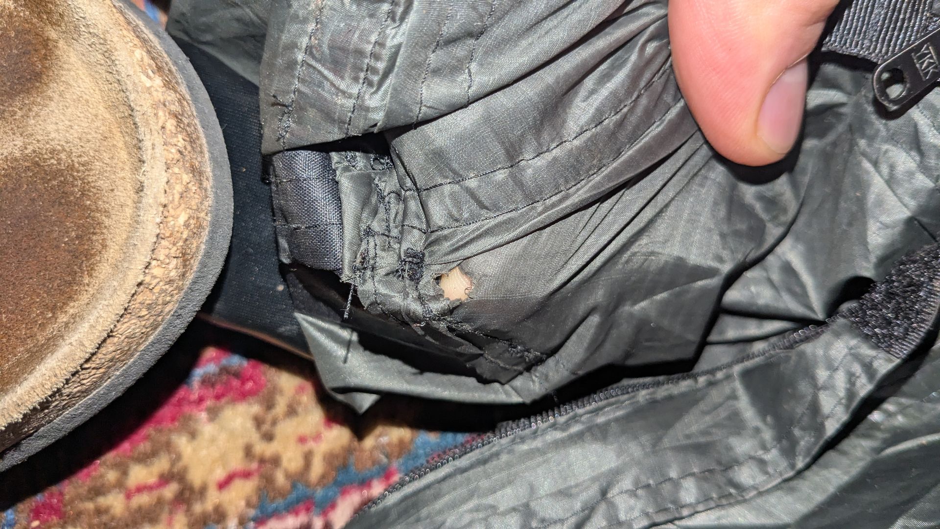 Bei mir ist am Trekkertent Stealth ein kleines Loch direkt neben der Aufstellstange.