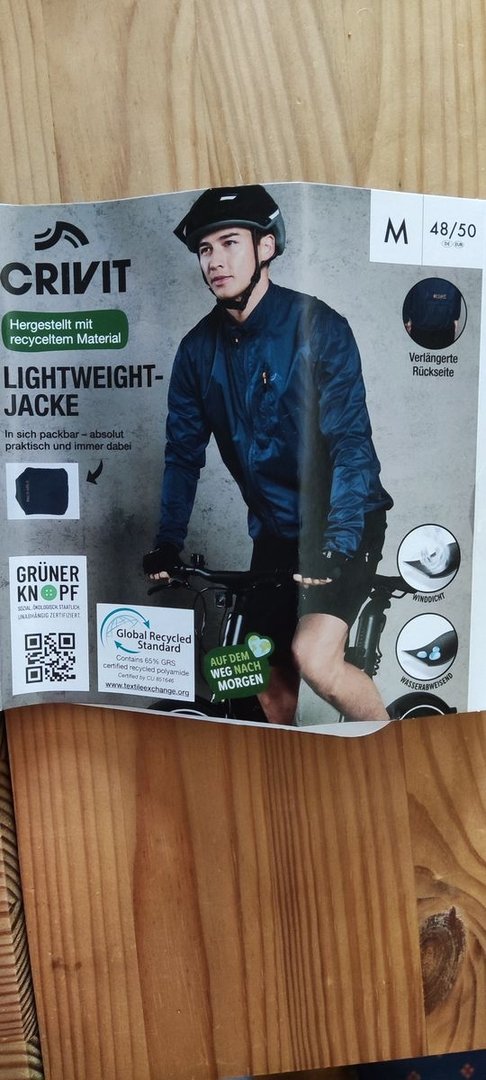 Lidl hat Grade Fahrradwochen. Hab da diese Windjacke für nen 10er mitgenommen, wiegt in M 106 gr. Hat keine Kapuze.