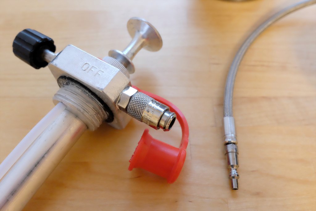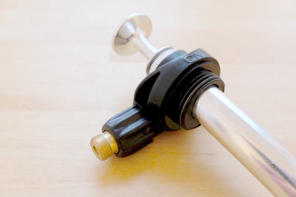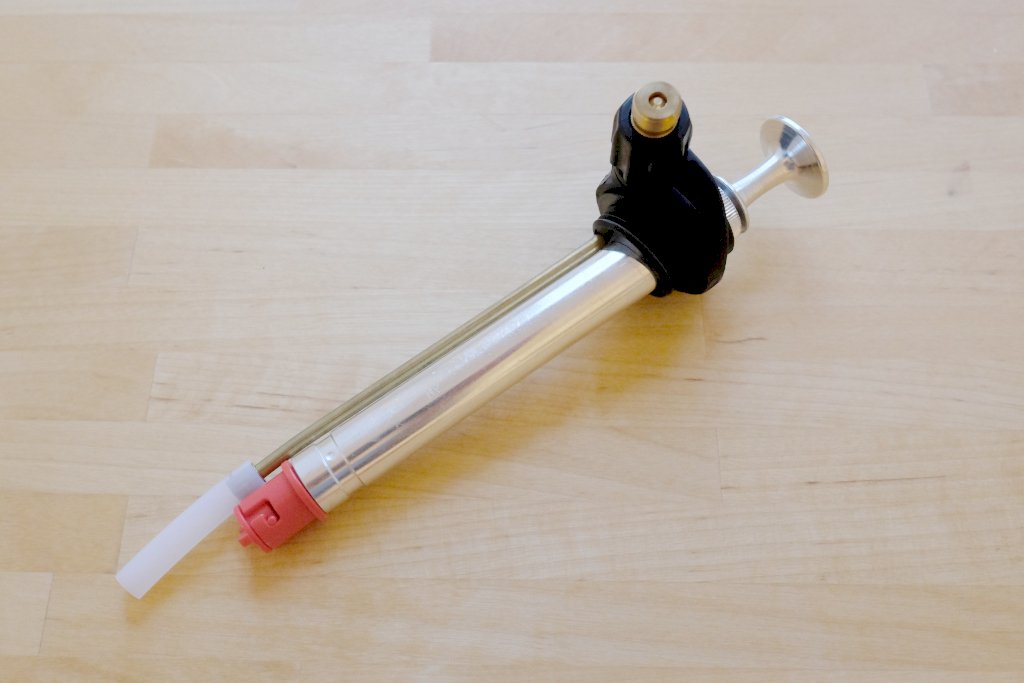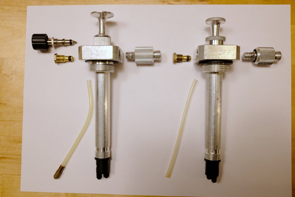 - altes Modell eines Himalaya-Kochers mit Ventilspindel im Lindal-Adapter am Schlauchende, sofern das gefundene Pumpenmodell keine Ventilspindel besitzt und stattdessen mit einem Blindstopfen verschlossen ist