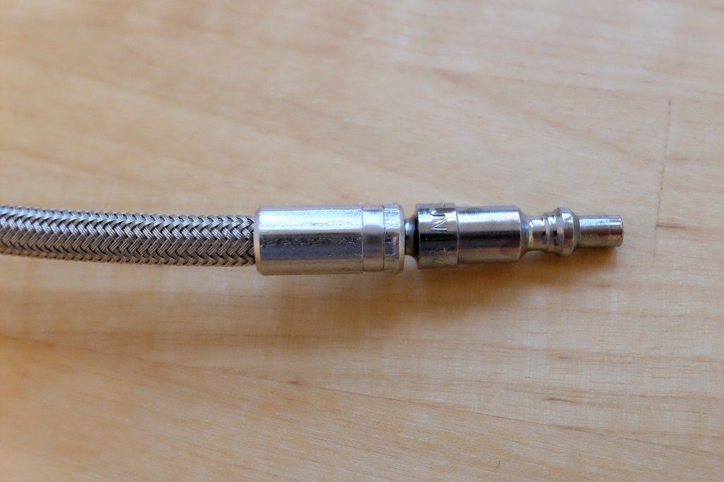 - CEJN-Schnellkupplung der Serie 141 mit einem zylindrischen G 1/8" Gewinde, alternativ könnten auch Kupplungssysteme von der Firma Rectus genutzt werden (z. B. die Serie 20 KA NW 2,7).