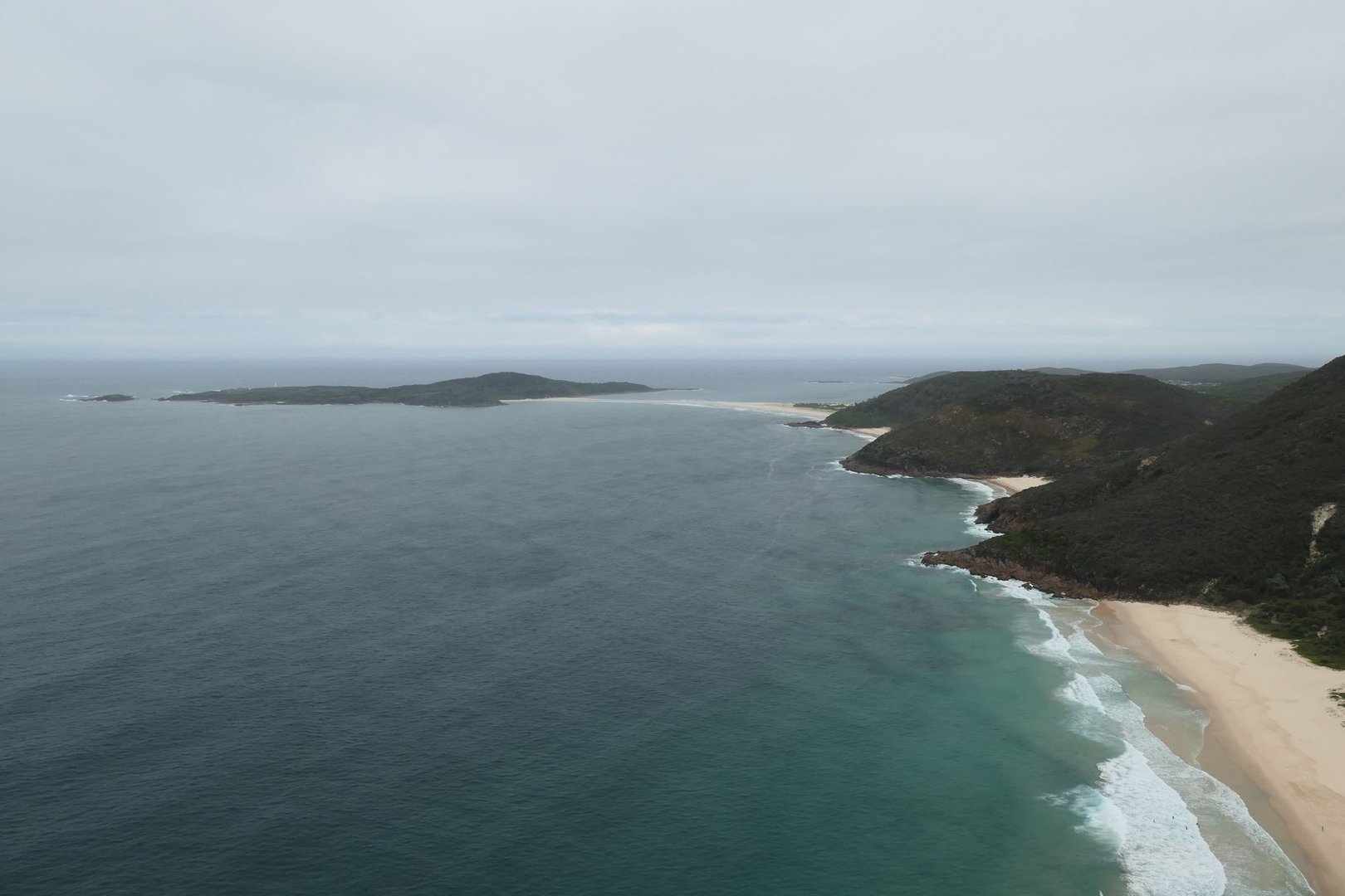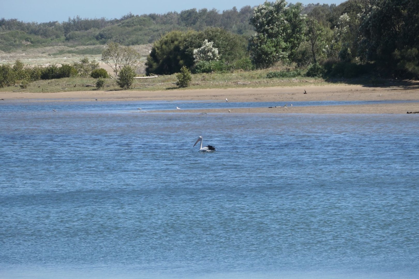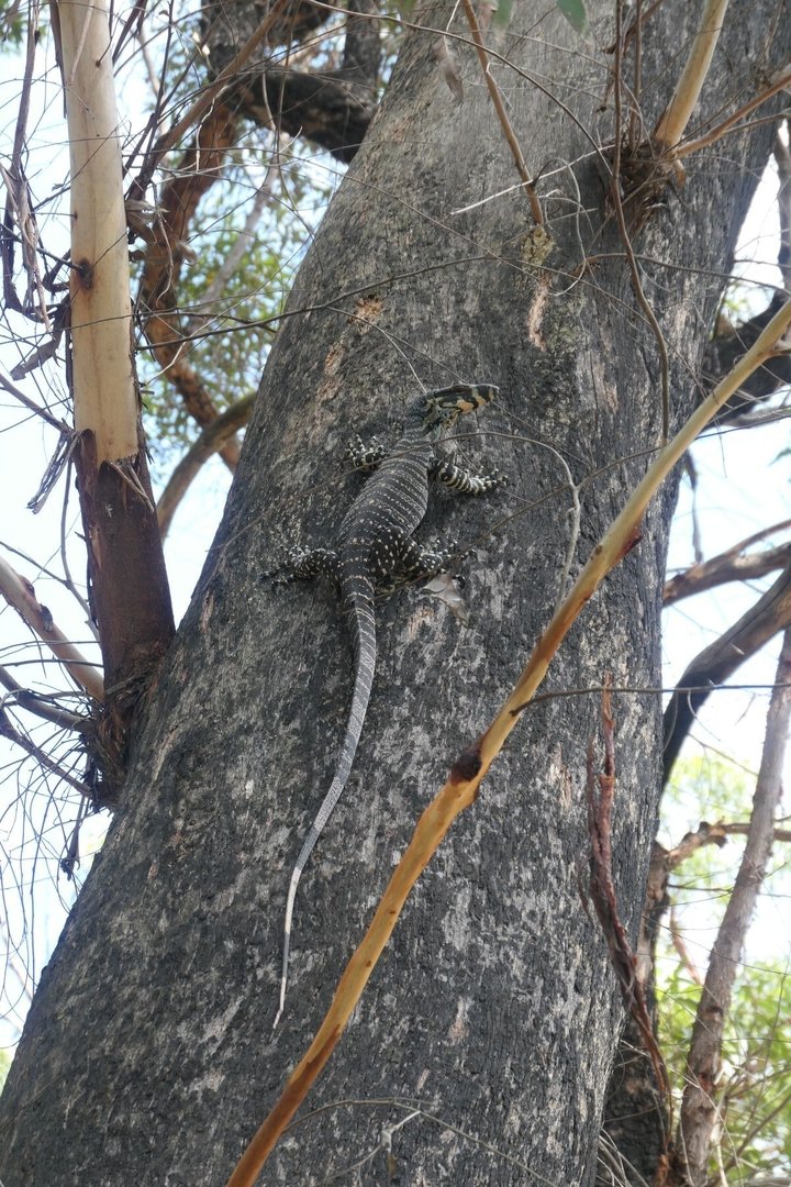 Da es heute 38 Grad heiss werden soll, kehre ich wieder an den 7 Mile Beach zurück und gehe bis an dessen nördliches Ende und weiter auf die Comerang Island, welches eigentlich nur per Fähre erreichbar, da diese von der einen Seite vom Shoalhaven River und von der anderen Seite vom Meer umschlossen ist. Der Shoalhaven River führt allerdings sehr wenig Wasser, so daß dessen Mündung von einer Sandbank verschlossen ist.