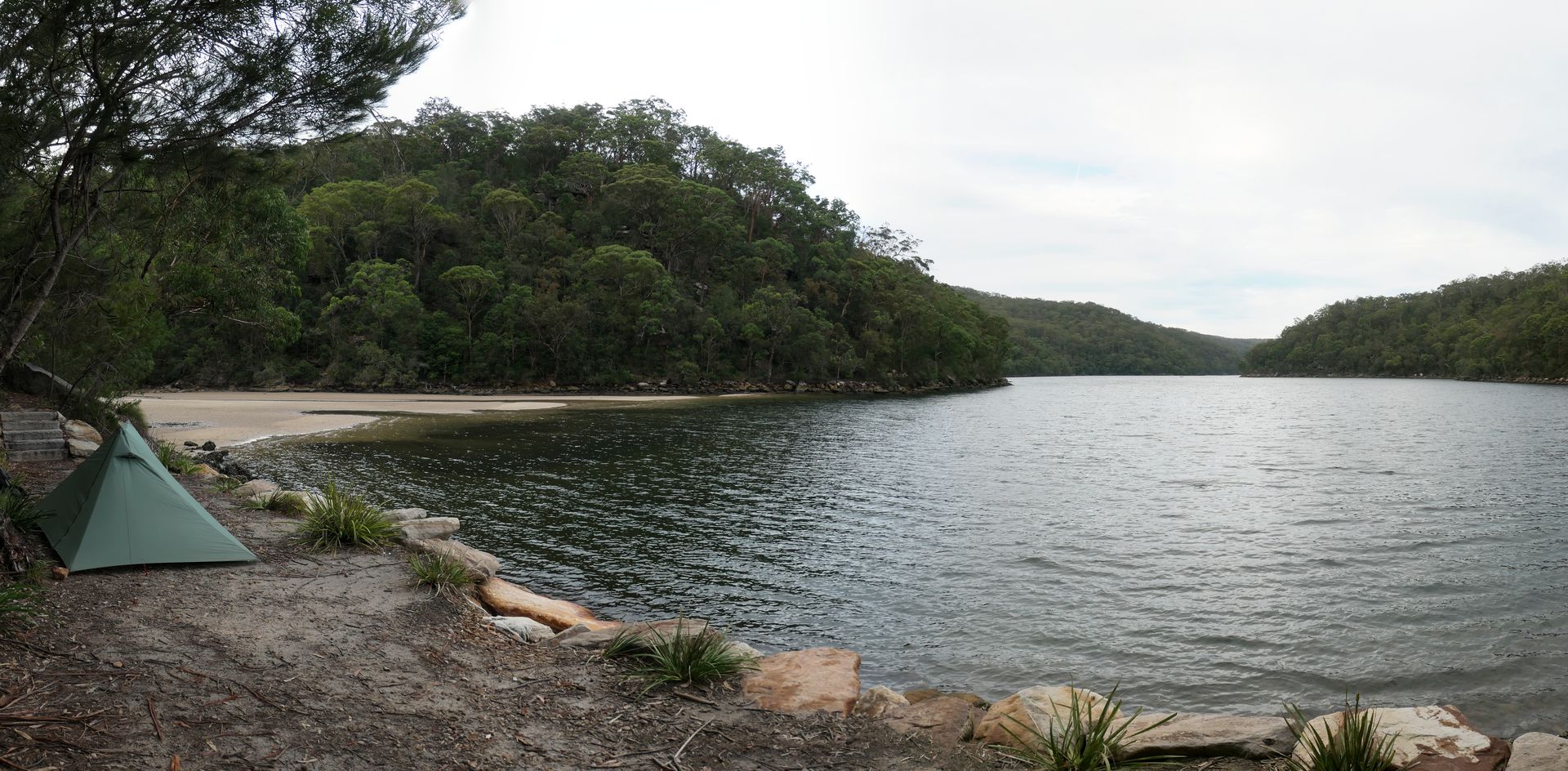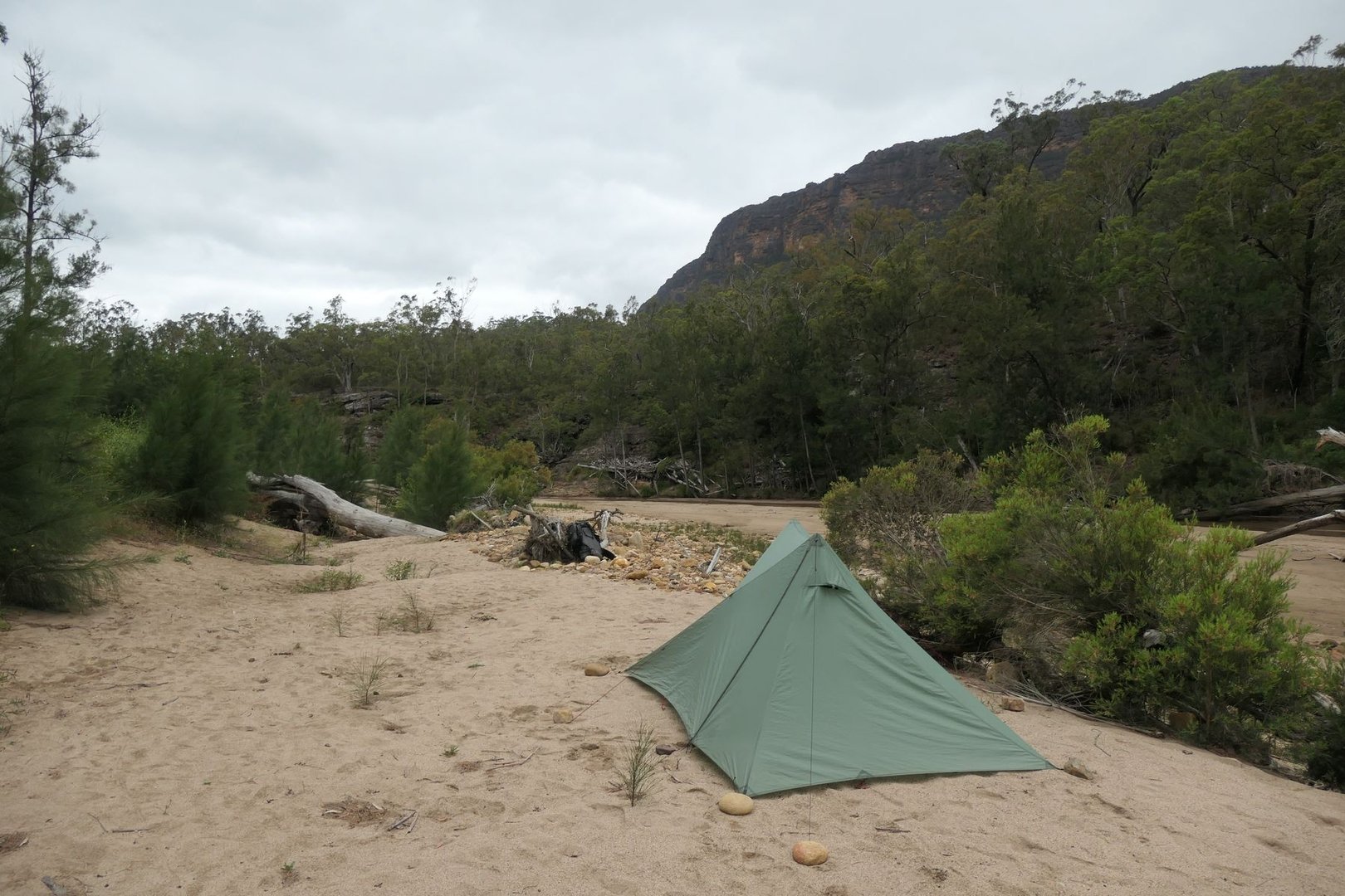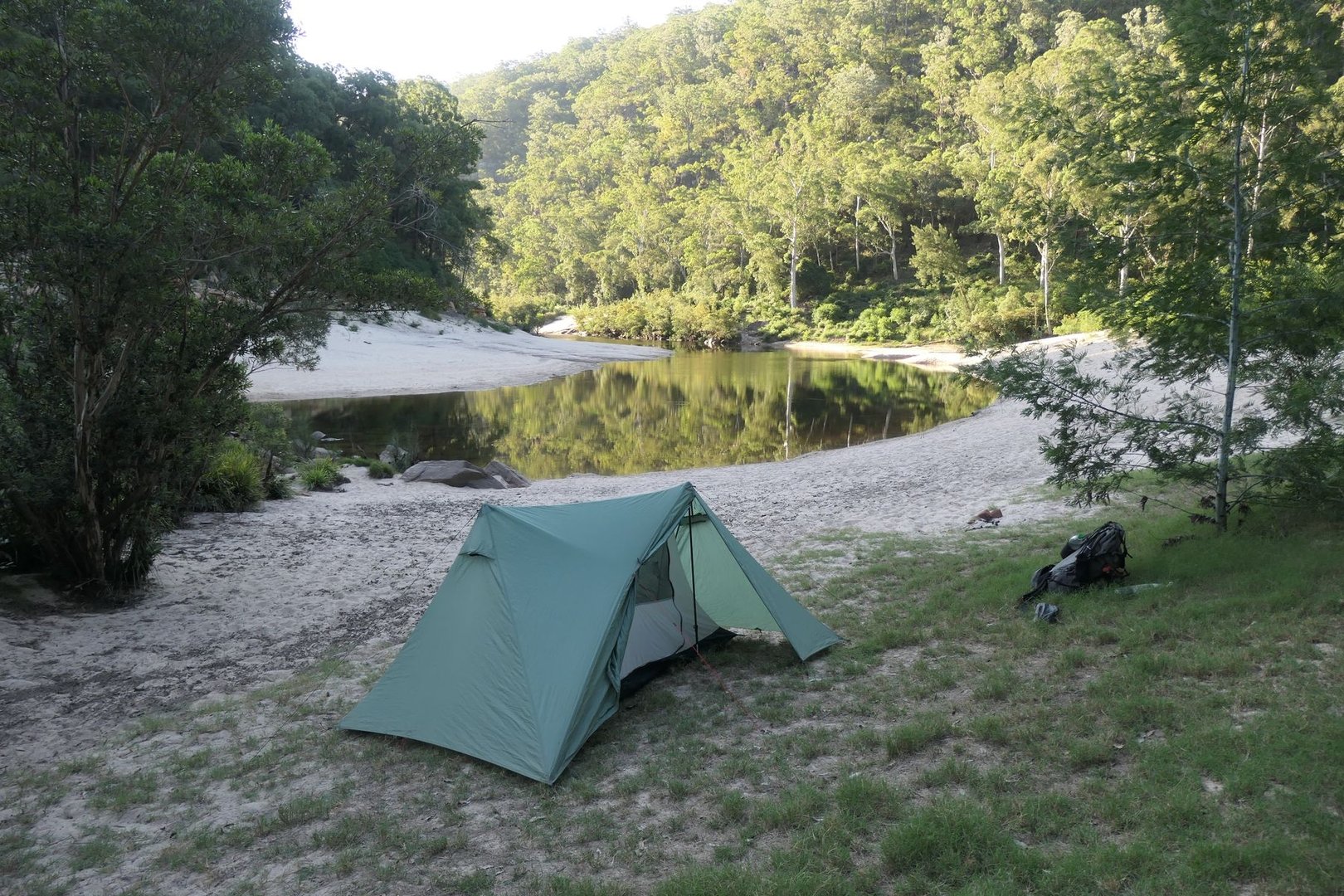Nach mehr als 9 anstrengenden Stunden und nur 14 Km kreuze ich den Nattai River wieder und übernachte hier.