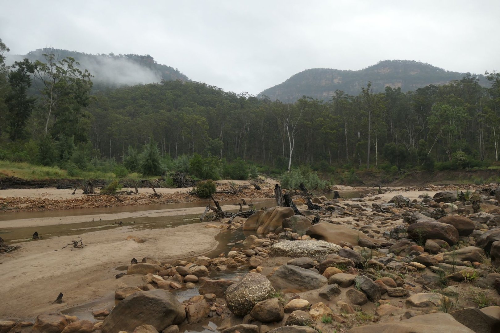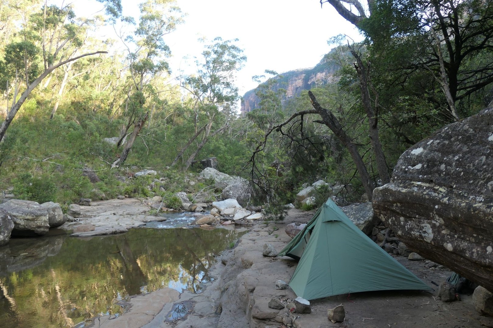 Am nächsten Morgen entschliesse ich mich, nicht mehr auf dem Track zurück zu kehren, sondern dem Flussverlauf zu folgen um dann von dort aus meiner Route Richtung Blue Mountains weiter zu folgen.
