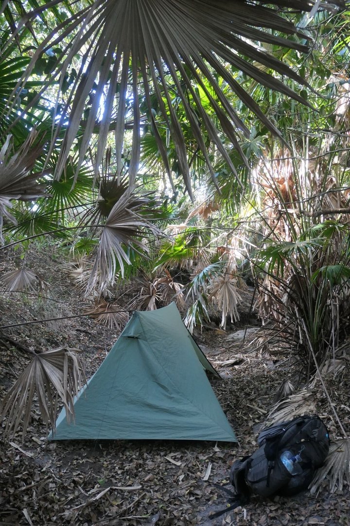 Hier gibt es eine primitive Campsite, die ich ganz für mich alleine habe.