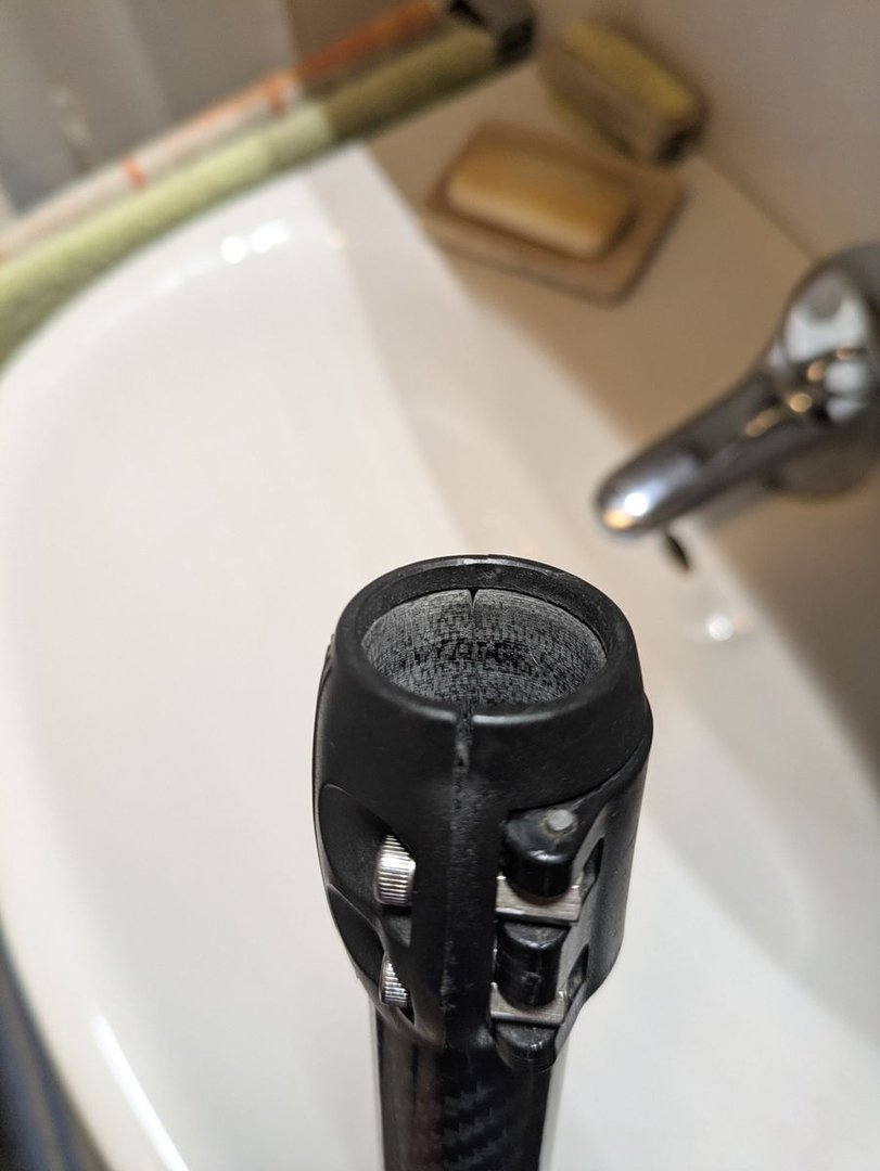 Und eventuell ist diese Art mit zwei kleinen Spalten statt einem größeren ja auch langlebiger, da das Carbonrohr ja dadurch gleichmäßiger zusammengedrückt wird ( kein Plan, vll ist das auch völliger Quatsch:D).