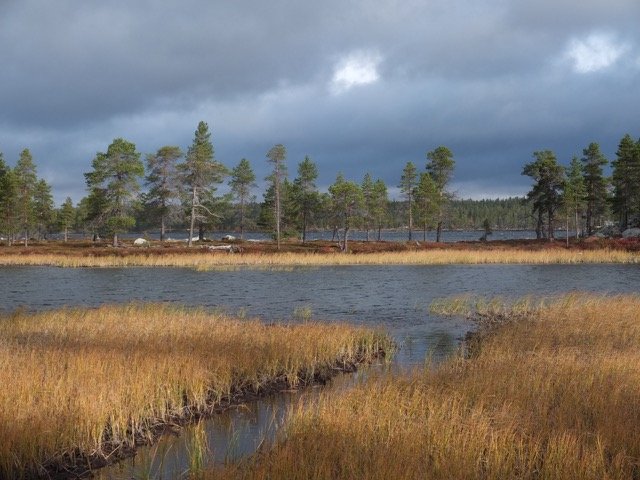 Heute habe ich Lust wieder draußen zu schlafen. Ich nehme am Abzweig den Weg in Richtung Svukuriset, überquere noch den Fluss Røa und wandere am Südufer des Sees Nedre Roasten entlang. Ich hatte auf wegloses Gehen gehofft, aber da hier ein Pfad lang führt, nehme ich diesen.