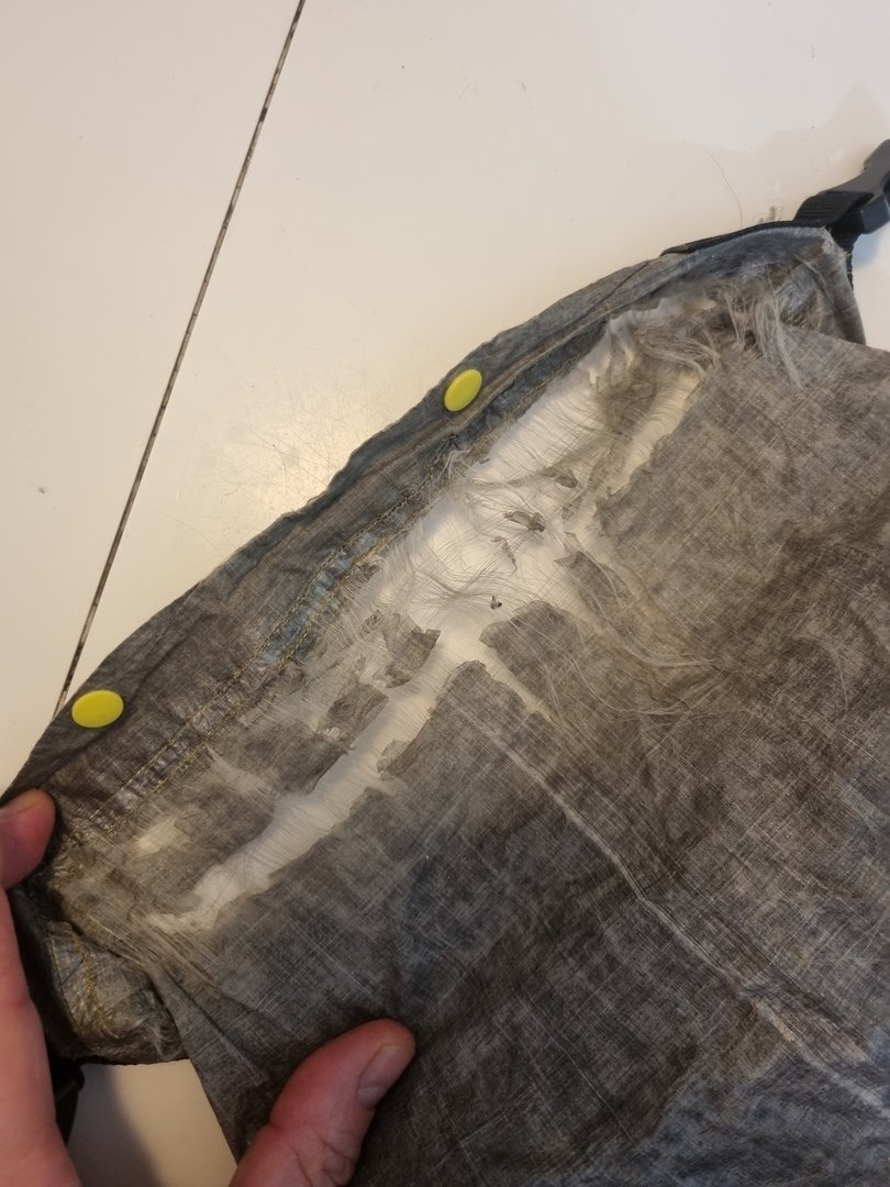 Hat jemand eine gute Idee, wie bzw. ob ich diesen Schaden an meinem Cuben-Pack von micha90 repariert bekomme? Das ist eine Seite oben am Rollverschluss, die andere Seite sieht noch besser aus, bzw. da fängt es gerade erst an. Im Anfangsstadium vermutlich mit Transferklebeband. Aber bei der richtig kaputten Seite auf dem Foto geht das nicht mehr, oder?