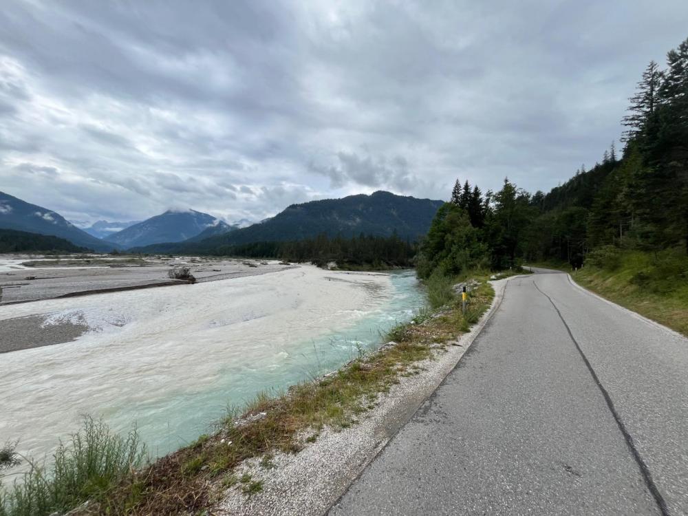 Ich startete im Sonnenschein und endete im Gewitter. Das sah ich kommen, nachdem die Bahn mit knapp zwei Stunden Verspätung in München eintraf. Kurze Empfehlung: Die App vom Deutschen Wetterdienst ist wirklich gut in Sachen Unwetterwarnung. Die Gewitterzellen konnte ich zwar umgehen, richtig nass wurde es trotzdem. Die Wege wurde binnen Minuten geflutet. Also tauschte ich spontan die ursprüngliche Idee in Arzbach zu campen gegen eine Nacht bei Freunden in Bad Tölz ein. Gut für die Moral, denn die kommenden Tage sollten schwer werden.