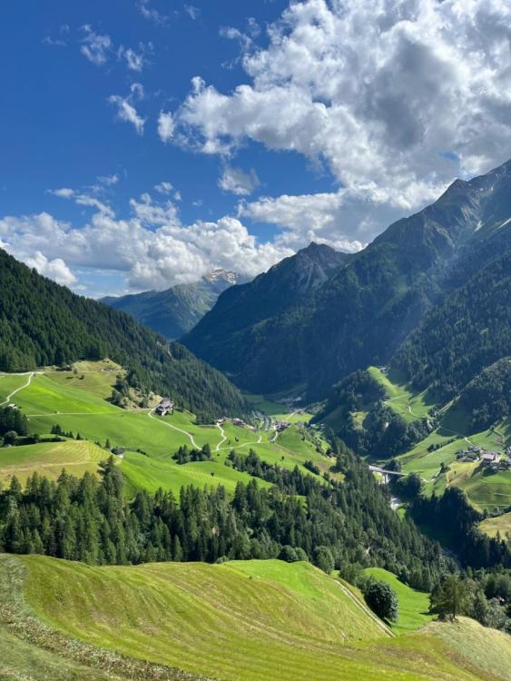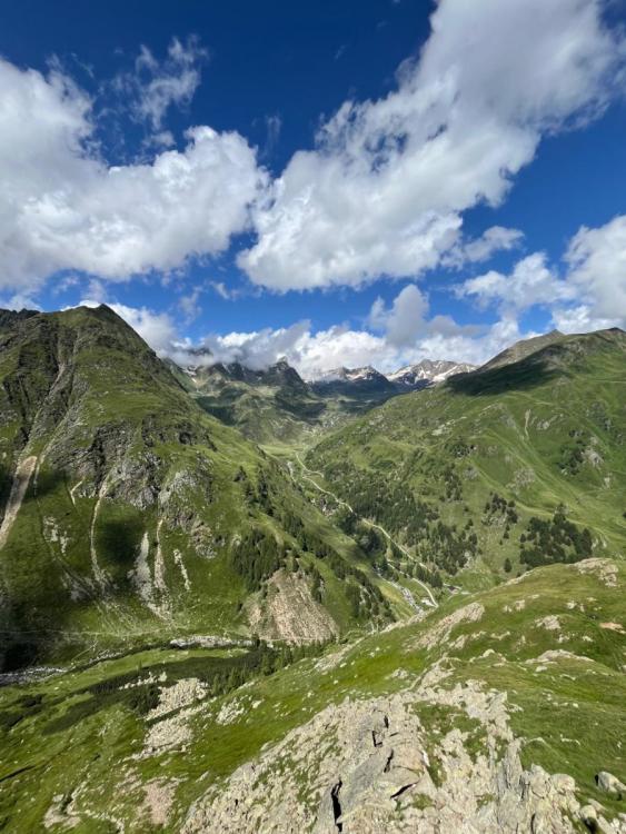 Diese Etappe war vor allem lang, die Höhenmeter waren überschaubar. Das Wetter war auf dem Weg der Besserung. Auf dem Isarradweg schlengelte ich mich gen Süden. Am Ende des Tages genoss ich wirklich leckere Käsespätzle mit Blick ins Ötztal bevor ich die erste Nacht in meinem Zelt verschwand.