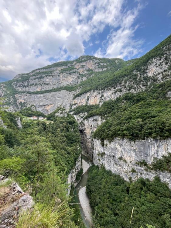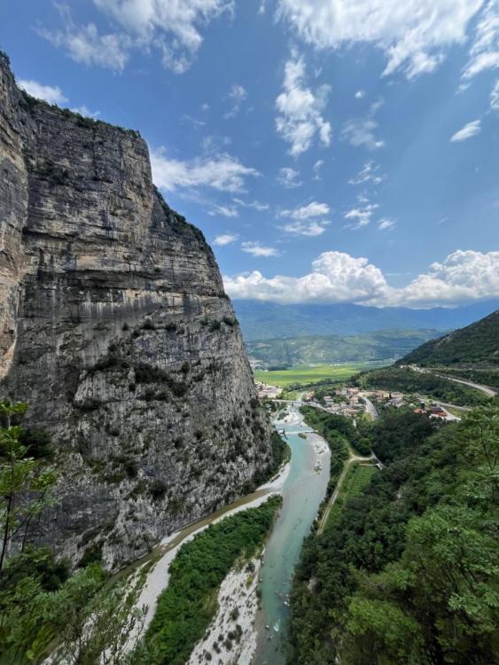 Ein tolle aber auch sehr anspruchsvolle Route. Für Tourenräder machbar, aber teilweise schwierig. Manche kurze Abschnitte gehen auf stark befahrenen Straßen, was mitunter etwas brenzlig sein kann, wenn rechts die Felswand oder der Abhang und links der Truck nur einen Hauch entfernt sind. Bis auf die Unterkunft in Flavon hatte ich nichts gebucht. Das war mit dem Zelt nur am Gardasse direkt ein Problem.